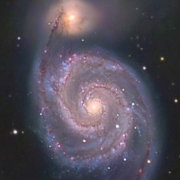 The Whirlpool Galaxy is an interacting grand-design spiral galaxy with NGC 5195.
